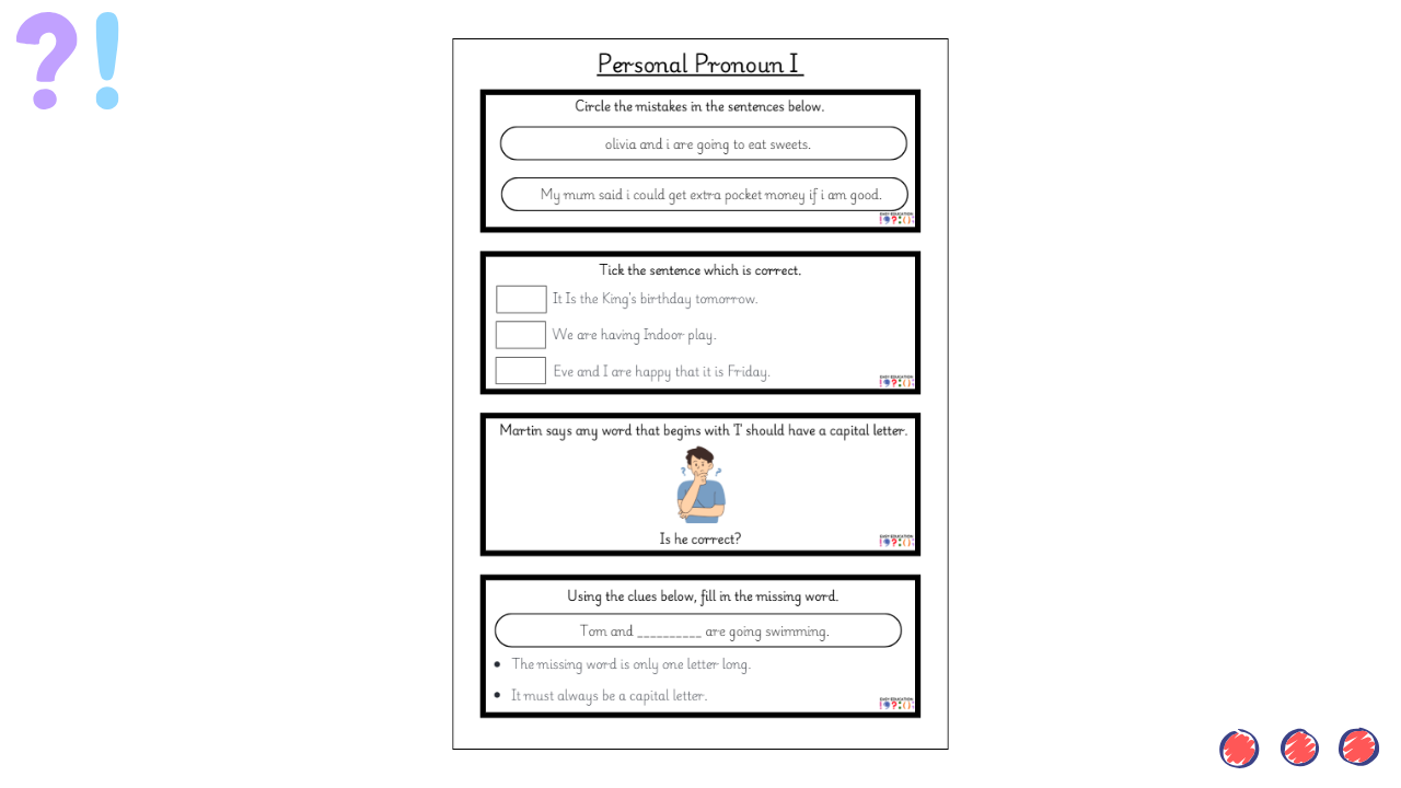 Capital Letters for the Personal Pronoun ‘I’ Mastery Activities