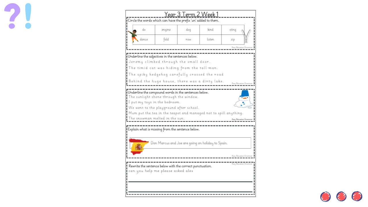 These weekly starters provide short, focused activities designed to reinforce grammar, punctuation and sentence structure skills. They are ideal for settling pupils at the start of an English lesson, revisiting prior learning and building confidence in applying key writing skills.