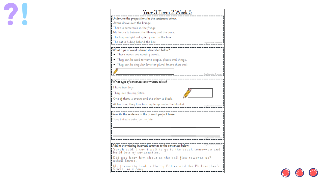These weekly starters provide short, focused activities designed to reinforce grammar, punctuation and sentence structure skills. They are ideal for settling pupils at the start of an English lesson, revisiting prior learning and building confidence in applying key writing skills.