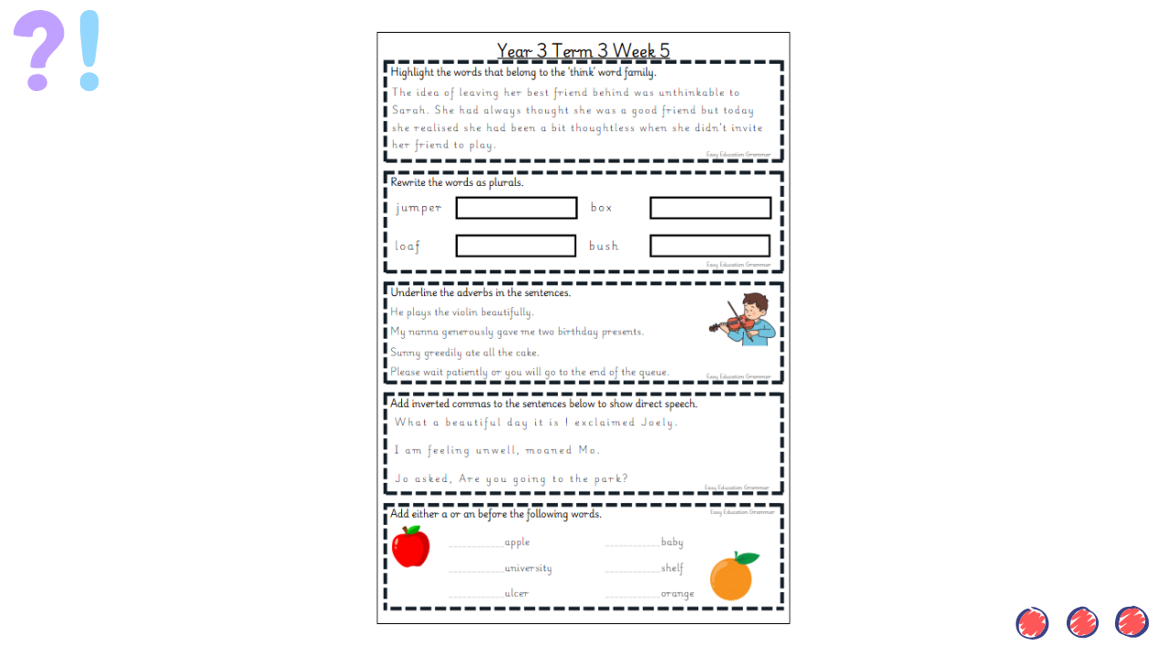 These weekly starters provide short, focused activities designed to reinforce grammar, punctuation and sentence structure skills. They are ideal for settling pupils at the start of an English lesson, revisiting prior learning and building confidence in applying key writing skills.