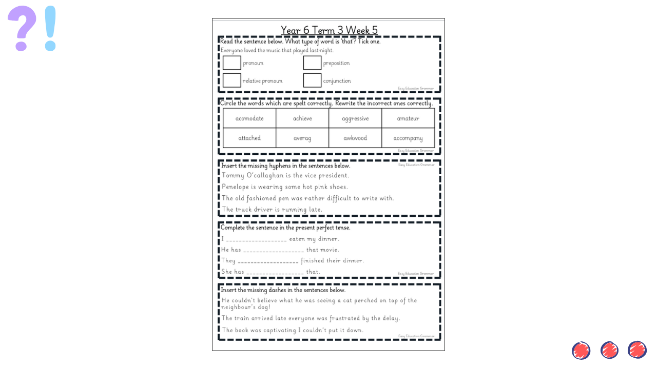 These weekly starters provide short, focused activities designed to reinforce grammar, punctuation and sentence structure skills. They are ideal for settling pupils at the start of an English lesson, revisiting prior learning and building confidence in applying key writing skills.