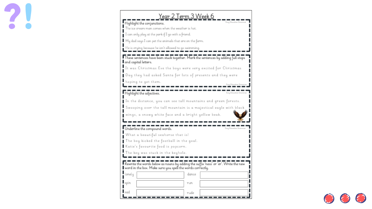 These weekly starters provide short, focused activities designed to reinforce grammar, punctuation and sentence structure skills. They are ideal for settling pupils at the start of an English lesson, revisiting prior learning and building confidence in applying key writing skills.