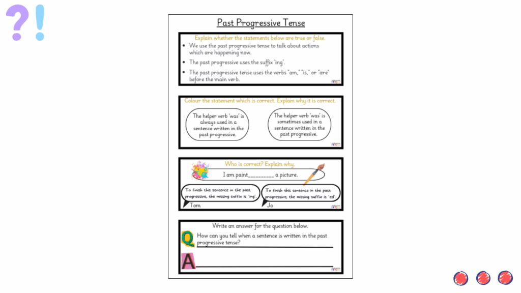 Past Progressive Tense Mastery Activities