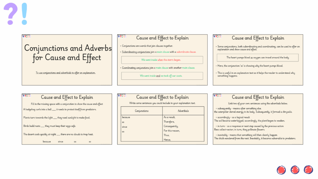 Cause and Effect Conjunctions and Adverbials to Explain